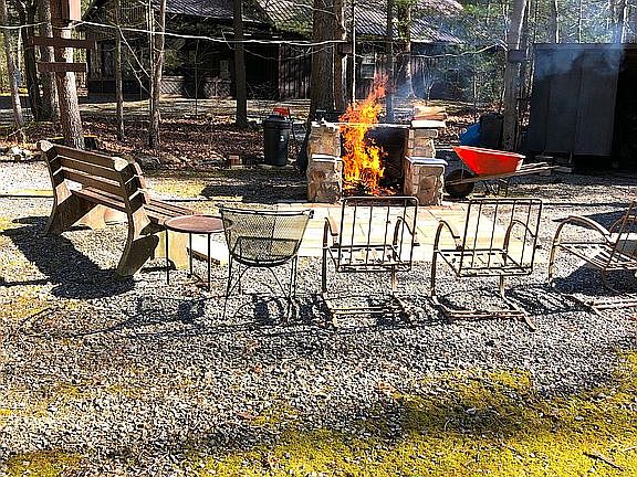 30x40 ft maintenance-free getaway rustic cabin with large screened front porch on 2 acre property close to State Park, hunting, fishing and other outdoor opportunities; 100 sq ft storage outbuilding; outdoor fire area for enjoyment and entertaining.