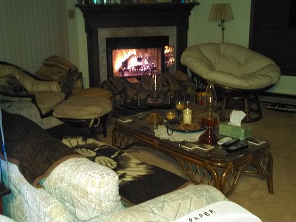 Wall to wall carpeting except kitchen & bathrooms, electric baseboard heat with digital programmable thermostats in every room including bathrooms, fireplace, air conditioning built into the walls (not in windows), gas stove/oven, 50 gallon electric hot water heater, dishwasher, fridge. Full basement, 2 car garage, shed.