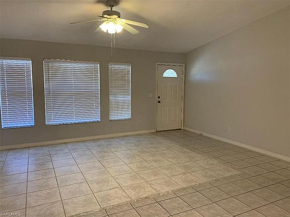 MRS CLEAN LIVED HERE! 3 Bedroom, 2 bath home with 1200 sq. ft. of living area located off of Santa Barbara Blvd. just S. of Trafalgar. Close to everything but at the back of the neighborhood and located on a dead end street. Features include a 2 car garage with auto opener, tile throughout except laminate flooring in 2nd & 3rd guest bedrooms, inside laundry room with washer & dryer included, ceiling fans in all rooms, screened lanai with cedar ceiling and fan, private backyard with lawn care included in the rent. **NO PETS** This home rents for $1450/month.