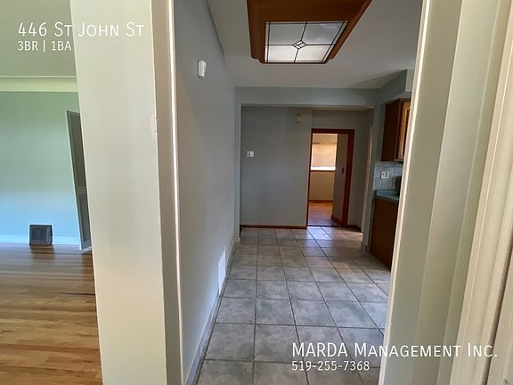 Welcome to your new home at 446 St. John! This beautifully updated 3-bedroom, 1-bathroom house offers the perfect blend of modern comfort and classic charm in a peaceful, sought-after neighbourhood. Step into a newly updated kitchen and bath, featuring stylish upgrades and contemporary finishes. The spacious living areas include a sunlit sunroom, perfect for relaxing or entertaining, and a finished basement with a built-in bar, providing valuable extra space for your lifestyle needs. Outside, you'll enjoy a private driveway that fits up to 3 cars and a garage for added convenience. Located in a serene area with easy access to nearby shopping and schools, this home is ideal for families or those seeking a quiet retreat. Tenants are responsible for utilities. Don't miss out on this exceptional rental opportunity! Central Ac Central Air Ceramic Floor Driveway Enclosed Back Porch Enclosed Front Porch Fenced Back Yard Garage In Suite Laundry Laundry Pets Allowed Washer/Dryer In Unit