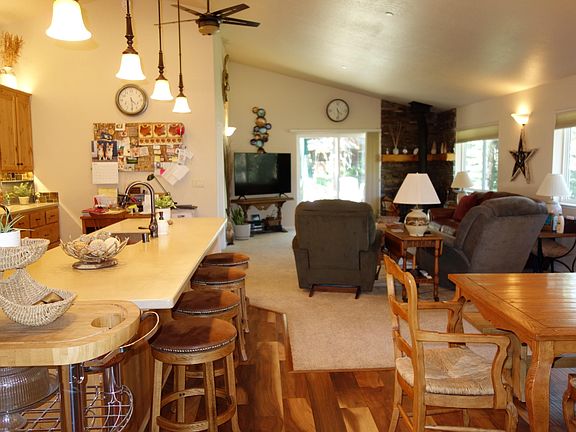 Don't wait, you have to see this well-kept and like new home. Leading to the homes entrance you will first come to the well-manicured landscaping and covered porch. Enter the home into the Great Room with woodstove, rock facing and hearth. The open plan contains the adjacent kitchen and dining/eating area. A fantastic entertaining home. Kitchen consists of solid surface counter tops with tile backslash, long breakfast bar and knotty alder cabinets with over and under counter lighting. A bathroom for each of the 3 comfortable bedrooms. Additional amenities include: Acacia wood flooring, quality carpeting, barn style door in the main bedroom, walk-in closet, wood accents throughout, o0n demand water heater, ceiling fans in each room, outdoor storage shed and wrought iron railing on the rear deck overlooking Madora Creek. Call Agent anytime for a private viewing.
