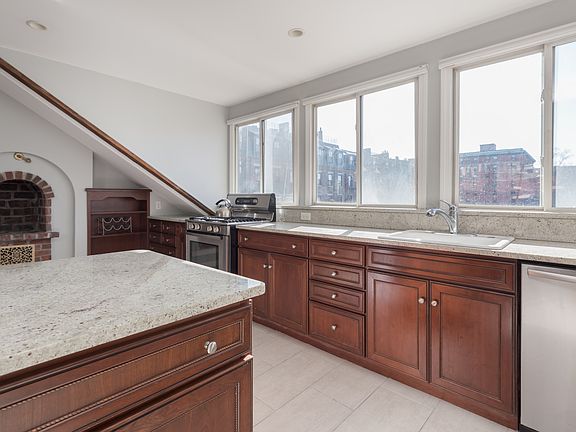 Sun-splashed penthouse duplex offers 3 bedrooms, 2 bathrooms, expansive private deck and wood burning fireplace. Upper level features vaulted ceiling and is flooded with natural light thru 12 windows and 3 exposures. Granite and stainless steel kitchen with ample storage including a pantry closet opens to dining and living areas offering the perfect floor plan for entertaining. King sized master bedroom and generous second bed each offer 2 exposures and double closets. Third bedroom is perfect for guest room, office or nursery. Great opportunity to live steps away from many of the South End's playgrounds, dog parks, restaurants, cafes and bars. Large private storage closet too. Rental parking options near-by. See agent. This won't last.