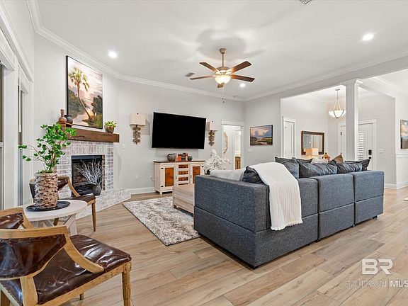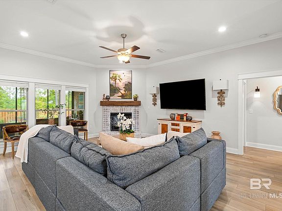 Imagine stepping into a home where luxury meets functionality, a place designed for both relaxation and entertaining. Nestled in the sought-after Aventura community, this Gold Fortified, all-brick Middleton floor plan was built by Truland in 2022 and offers the perfect combination of modern upgrades and timeless charm. As you walk through the front door, you're greeted by tall ceilings and EVP flooring that flow seamlessly throughout the home. The gas log fireplace, framed by a custom whitewashed surround and walnut mantel, adds warmth and character to the inviting living space. The heart of the home the chef's kitchen boasts granite countertops, custom cabinetry, two pantries with custom shelving, a gas oven, farmhouse sink, tile backsplash, and pendant lighting over the spacious island. Retreat to the primary suite, where a tray ceiling, two walk-in closets, and a spa-like ensuite with a large garden tub, tiled shower, double vanity, and private water closet create a serene escape. The third and fourth bedrooms offer privacy, sharing a convenient Jack-and-Jill bath. Plantation shutters and custom blinds elevate the home's style, while a separate dining room adds a touch of elegance. Outside, the screened-in patio with a custom swing, epoxy-coated floor, and calming water feature invites you to unwind. The fenced backyard oasis features lush landscaping, an irrigation system, raised garden beds, and a storage building on a concrete slab. WiFi-enabled exterior lighting and wall mounted TVs add to this smart homes convenience. This is more than a house, it's the perfect place to call home. Schedule your private showing today! Buyer to verify all information during due diligence.