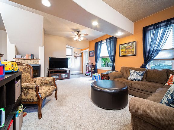 Unique and full of character -Built in-1914 and totally renovated, Brick home. The space will amaze you. nice large bedrooms up. Master was just upgraded w/large glass walled shower and unique tile work throughout. The kitchen is very large with a 4 seat Island and Many built-ins. there is main floor laundry and a separate 1/2 bath. The large dining is centrally located and has a gas fire place it shares with the living room. The lower level boasts a 4th large bedroom, very large family room, updated bath and storage/utility room. Don't miss seeing this very special, one of a kind home. MAKE IT YOURS TODAY! The yard is fenced, and has underground sprinklers. With 3 levels being completely finished, there is room for all. The large, sunny kitchen island seats 4 bar stools.