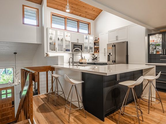 This perfect Mammoth Lakes retreat is located creek-side at the quiet terminus of Snowcreek Rd in the highly desirable Snowcreek III community, with stunning views of an adjacent meadow and views of the Sherwins and Mammoth Rock. This home offers 3 bedrooms, loft and 2 bathrooms overlooking a quiet lawn, with easy access to town paths and shuttle. Snowcreek Meadow, the stunning permanent open space preserve, is literally steps away, and offers a tranquil retreat and is home to a wide variety of plant and animal species. This home has been meticulously renovated by two award-winning designers. The residence has been designed to respect the original mountain charm, with a modern and sophisticated aesthetic to appeal to both year-round residents and mountain vacationers. The newly-renovated gourmet kitchen boasts Frigidaire Professional appliances, NewAir wine refrigerator, insta-hot water, custom cabinetry, modern quartzite countertops, and ample storage and space for entertaining. Enjoy cozy evenings in the primary living space near the reclaimed walnut and granite fireplace hearth, updated wood stove, with modern luxury vinyl flooring, vaulted ceiling, striking custom light fixture, and modern ceiling fan. A new sliding door opens out to the balcony w/ stunning views. A spacious loft offers a wonderful retreat for an artists’ studio, sleeping loft, den, or kid’s play area. The Primary Bedroom has been newly-remodeled with custom wall mural created by a local artist, and modern en-suite bath with double-vanity and heated floor. The second bath has also been renovated with double-vanity, modern tile, and storage. The laundry and hallway space have been cleverly-designed to provide ample storage, a comfortable seating area with space for boots, jackets and helmets, and even more storage tucked beneath the stairs. A third bedroom, or den, opens directly to a spacious lawn area, offering residents with ample space for winter play, or summer entertaining. STRs allowed.