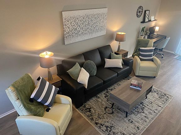 Enjoy the airy ambiance of the open layout, comprising three bedrooms and one and a half baths, ideal for both relaxation and entertainment. Outside, discover a lush backyard enveloped by verdant trees, offering a peaceful retreat from the bustle of daily life. With a keyed garage door entry providing added security and convenience, this townhome ensures a worry-free living experience. 2 Bedrooms feature king size beds, nightstands, USB hookups; the 3rd bedroom has 2 twin beds. 2 wall mounted Fire TVs. Utilities and maintenance provided! Nestled in a prime location near William Jewell College, this duplex offers proximity to a myriad of amenities, including the vibrant Liberty square, esteemed elementary schools, picturesque parks, and a diverse array of shopping and dining options. Whether you seek adventure or serenity, this property promises to cater to your every need. Experience the epitome of comfort and convenience with a 30-day minimum stay and all utilities included. Don't miss the opportunity to make this exquisite townhome your own! Furnished month to month with utilities paid. Minimum lease length is 30 days.