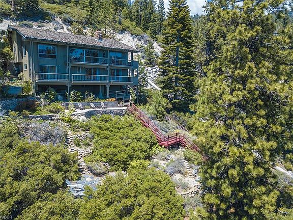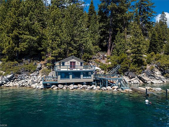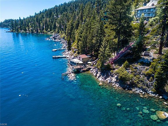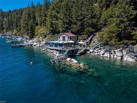 This Crystal Bay lakefront estate includes a guest house built directly over Tahoe's waters. Predating the existing main house, Eugene's Crystal Bay Chalet was a lodge and restaurant serving dinner on the water and offering overnight accommodations, through the late 1940s and 1950s. Famed for having hosted Frank Sinatra and Ava Gardner, the guest house became know as "The Honeymoon Cottage". The 4 bedroom & 4 bath main house offers spectacular panoramic views with two decks, spanning the length of the house, and two patio areas to maximize outdoor living. An electric tram connects the main house to the waterfront 2 bedroom & 2.5 bath cottage. Enjoy the privacy of 150 feet of lake frontage. Three large decks on the guest house offer lakeside lounging. With two buoys, breakwater and a deep water pier, steps literally take you in to the water. For those wishing to redevelop this home, the property has 6,300 square feet of impervious coverage. Property is being sold "as-is".