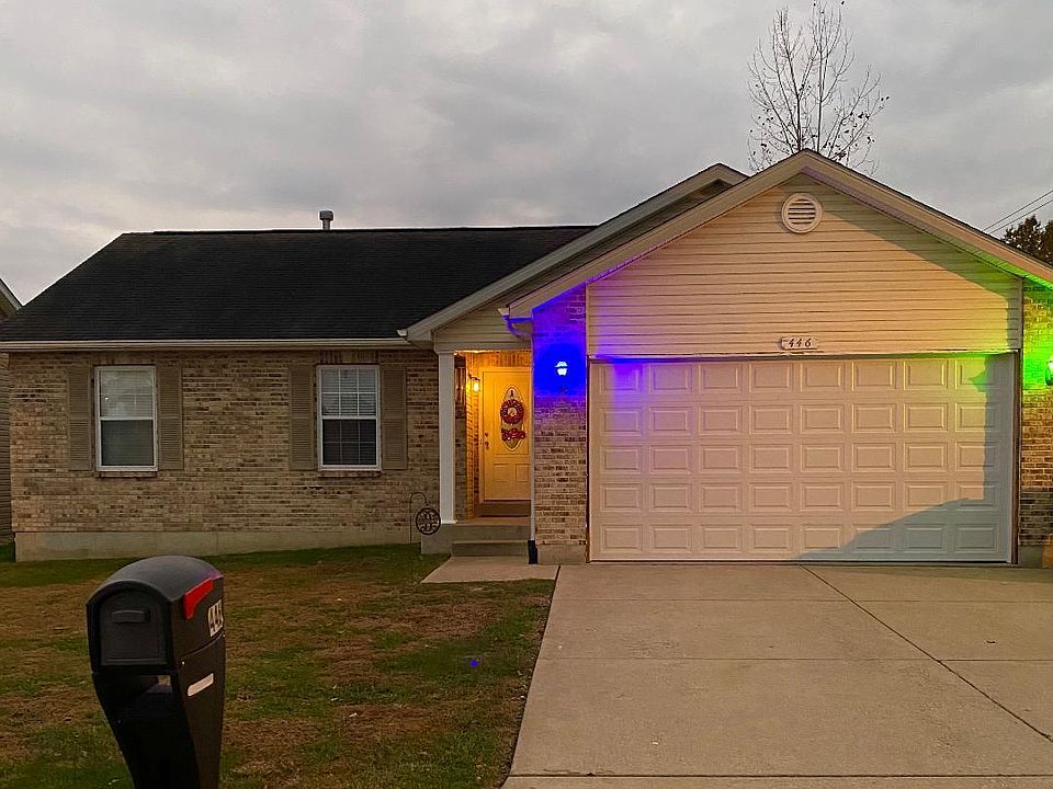 Former Display home. Situated in well sought after Stonewater subdivision in Pevely. 3 Bedrooms, 2 full baths. Vaulted ceilings in Great room and fireplace. This home has a covered porch entry, open floor plan, main floor laundry and two car attached garage. There is a master bedroom/bath suite. Large, Level corner lot. "Give Your Dreams A New Address"