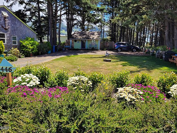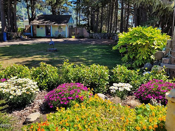 A 5,000 sq. ft. lot with Yachats State Park on two sides, and only footsteps to the ocean front. Lovingly-landscaped grounds complement the tiny house on the south property line, if you want to just live in it, but plenty of room for a larger home on the rest of the lot. Utilize the cottage as in-law quarters? Enchanting ocean view cottage newly renovated in 2020, with forethought in functionality, use of space: living room has vaulted ceiling, two walls of large windows; walk-in shower and stacked washer & dryer in bath; bedroom holds king-sized bed, glass doors open onto privacy area. Patio off living room is ''front-row seating'' for watching the sun set on the Pacific. Night after night. Buyer to perform due diligence with City in reference to building options. MLS #21-1717 next door.