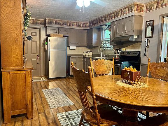 Often sought but seldom found move-in ready home on .71 acres. This 3 bedroom, 2 bath home offers an eat-in kitchen (appliances stay!), living room, full finished basement, covered patio, one car attached garage, nice storage barn and a 1200 sq foot detached garage. Relax in your hot tub or by the fire pit at the end of a long day. Newer flooring, roof and windows. Did I mention no HOA?!