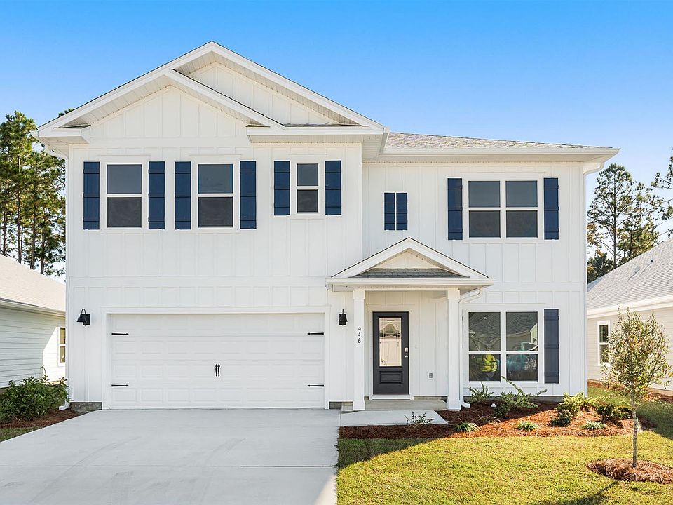 Welcome to 446 Wolcott Way, a new home located at Bayside at Ward Creek in Panama City Beach Florida. This is a two-story home that is ready for move in. It offers a brightly lit open concept design with modern finishes.