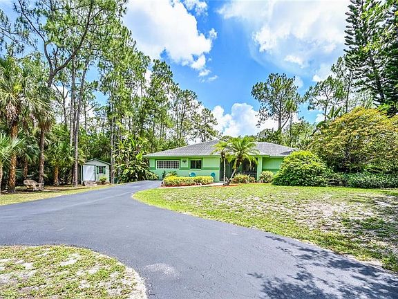 NEW PRICE! MOTIVATED SELLERS! Amazing location - estate home- WEST of Collier on 2.5 acres! Endless options-HORSES OK, room for a pool and spa, growing your own food forest, adding another building, or parking your RV. This 3 bedroom, 2 bath home is set back on a beautiful, PRIVATE lot with pines, palms and lovely gardens. Ranch style home with vaulted ceilings, an updated kitchen and many other improvements. The 2018 kitchen has wood cabinetry, rich granite counters, a tumbled marble backsplash, stainless appliances and porcelain tile extending to the great room. The great room has 2 sets of french doors leading to the 696 sq. ft. deck and a large screened lanai area. Many other seating areas have been created in the yard for both sun and shade options for relaxing, dining, entertaining and grilling. Additional features include recessed lighting, a spacious master suite with a huge walk-in closet, an oversized jetted tub and walk-in shower. New water filtration system, large shed and tile and laminate flooring throughout the home! Great location just N of Pine Ridge right off Collier! Minutes to I-75, and Naples white sand beaches, shopping, restaurants, galleries and museums.