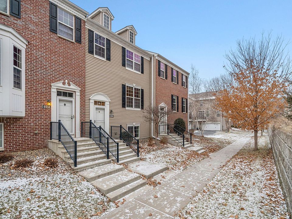 Modern 4-bed, 4-bath townhome with upgraded hickory flooring, new appliances, gas fireplace, and spacious kitchen. Master bedroom with en-suite, double sink, and walk-in closet. The lower level features a large office space. Ideal for buyers seeking a stylish home with desirable amenities. Enjoy community amenities such as a pool and walking trails.