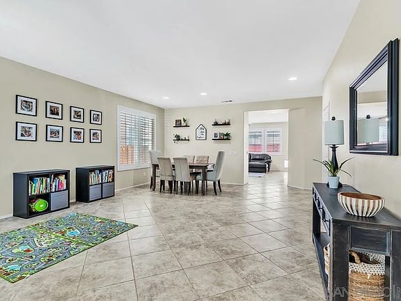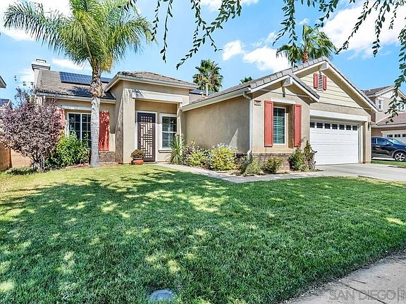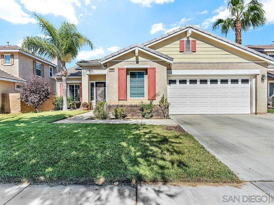 Beautiful Single-Story Craftsman Home in Highly Desirable West Hemet! Welcome to this home located in a quiet, family-friendly neighborhood on Hemet’s sought-after west side. Offering nearly 2,500 square feet of living space, this four-bedroom, two-bathroom home combines comfort, space, and functionality. Step inside to a spacious formal living and dining room that sets the tone for the home’s open and inviting layout. The seamless flow continues into the family room and kitchen — perfect for entertaining or everyday living. The kitchen features granite countertops, ample cabinetry for storage, a convenient built-in desk area ideal for working from home, and plenty of natural light throughout. The primary suite is a true retreat, complete with a walk-in closet, dual sinks, a private restroom, and a separate soaking tub and shower. All bedrooms are generously sized, offering flexibility for family, guests, or a home office. Additional highlights include beautiful tile flooring throughout the main living areas, cozy carpeted bedrooms, and a well-equipped laundry room with a utility sink and extra cabinets, conveniently located off the garage entry. Enjoy the nicely maintained front and back yards, perfect for outdoor gatherings or relaxing evenings. This prime location is just minutes away from Seven Hills Golf Club & Diamond Valley Lake and Marina! Easy access to Domenigoni Parkway and the I-215, with nearby elementary, middle, and high schools — all within the same community. Don’t miss the opportunity to make this beautiful Hemet home yours!