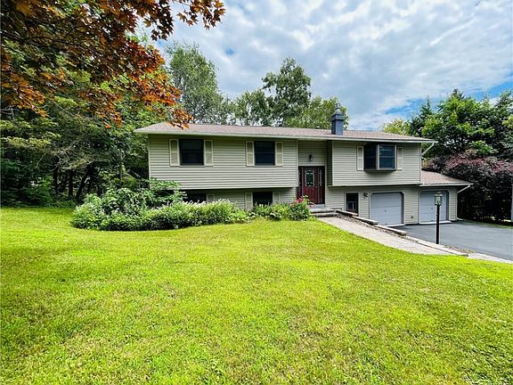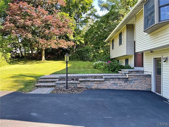 Come see this spacious raised ranch in the Marcellus school district! Walk up the stone steps with retaining wall to enter. Head down the stairs to the versatile family room / home office with a newly remodeled half bath. From the sliding glass door you enter the private fenced in back yard. On the main level there are three bedrooms with full bath. The kitchen, family room, and formal dining room blend together beautifully to make a great entertaining area. The vaulted ceilings make the space feel even larger! Sliding glass doors in the primary bedroom and formal dining room allow you to step onto the deck which runs the entire length of the house. Hardwoods floors are in great shape. Pergo Plus flooring downstairs. Front retaining wall and steps done in 2017. Fenced in yard. Newly remodeled half bath downstairs. Driveway topcoat in 2021. Two new mini split A/C units with Heat pumps installed in 2022. NEW ROOF 2022.