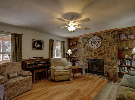 This beautiful custom build home is private ,yet just minutes to downtown Bryson City. The homes offers master on main,large kitchen and dinning area.Living room is open and bright with large stone fireplace. The screened in porch off kitchen and the front porch is so relaxing and peaceful. Easy access with paved driveway.