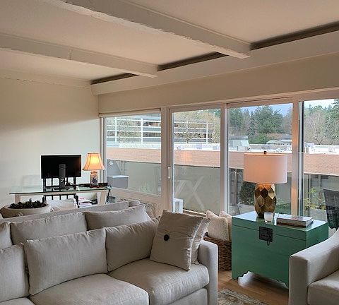 Light and bright beautifully updated south facing mid-century 2BR / 2BA located close in SW PDX Raleigh Hills Neighborhood. On public transit lines to downtown PDX, OHSU/Marquam Hill, and Washington Square. Remodeled in 2021 / 2022. New oak hardwoods, fireplace surround, kitchen surfaces, new appliances and hallway bathroom completely remodeled. Exterior deck extends full length of the unit. Wood burning fire place. Assigned carport parking for single car. Additional 'guest' parking available. Laundry on each floor (located on other side of stairwell from this unit) Property sits one block east of Scholls Ferry Road (not directly on Scholls) Outdoor pool open Memorial Day thru Labor Day. Secure building. Owner pays for HOA fees which include water, garbage, grounds maintenance, exterior repairs, management fees. Tenant pays for electric, internet, cable, etc. No more than one dog (20 lbs max weight) or one cat please. $1975 refundable security deposit also required.