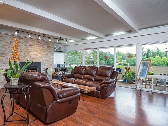 Rare Raleigh Hills Find! Be sure to see the 3D Tour! Take the Elevator up to this Immaculate 1 level, 3 BD/2 BA ste, 10 min to downtown. Open beam ceilings, Wall of Windows for tons of natural light, sunset views, opens to covered deck. Wood burning stove w/stone. Lge rooms are spacious & open. Lge mstr BD Ste. plumbed for W/D. Secure bldg, beautiful grounds w/pool. Keyless entry. 2 cov. pkg spaces w/storage. 3rd flr storage w/optional shared W/D.