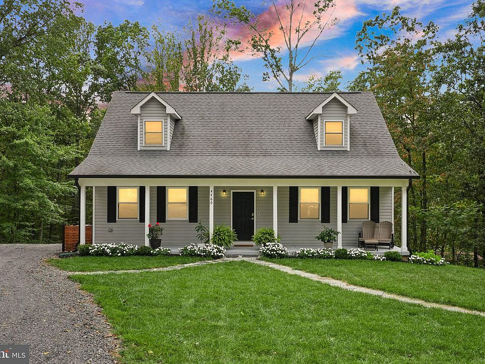HONEY… STOP. THE. CAR. THE COUNTRY RETREAT EVERYONE WANTS — WITH ALL THE BELLS & WHISTLES... Just one mile from I-66, this 2019 custom Cape Cod (4 bedrooms/4 bathrooms) sits on a private, wooded acre—the kind of home that makes you grab your partner’s arm and say: “This is the one.” From the moment you arrive, the charm is undeniable: a classic front porch, beautiful landscaping, and the peaceful ambiance of country living, all while being minutes from Haymarket, Warrenton, wineries, dining, and the best of Northern Virginia. Inside, warm distressed hardwood floors flow throughout the main and upper levels. The living room features designer shiplap walls, creating a cozy, modern farmhouse feel perfect for relaxing or entertaining. The kitchen is a total showstopper with custom cabinetry, butcher block accents, upgraded quartz countertops, an extended peninsula with seating for four, subway tile backsplash, and premium stainless steel appliances. A main-level bedroom with full bath provides flexible space for guests or multigenerational living***Upstairs, the primary suite is a peaceful retreat with dual custom walk-in closets and a spa-inspired bath with upgraded tile and a glass-enclosed shower. Two generously sized secondary bedrooms share a beautifully renovated Jack-and-Jill bath, giving everyone their own space in comfort and style. The fully finished walk-out basement adds incredible versatility with a large recreation room, a bonus room for a gym, office, or studio, a full bath, laundry area, and ample storage. Whether it’s a playroom, home theater, or workspace, this level has it all***Step outside to your private backyard retreat with a maintenance-free TREX deck, fully custom wood fence, large storage shed, concrete pad for organization, and newly installed French patio doors bringing in tons of natural light. The yard is perfect for entertaining, relaxing, or simply enjoying the peace and privacy of this wooded setting***All of this comes just 45 miles from Washington, D.C., with quick access to I-66, Routes 29, 28, 50, 15, and 17, nearby wineries, restaurants, cafés, shopping, and Dulles International Airport***Tranquility, convenience, and style all in one remarkable home.
