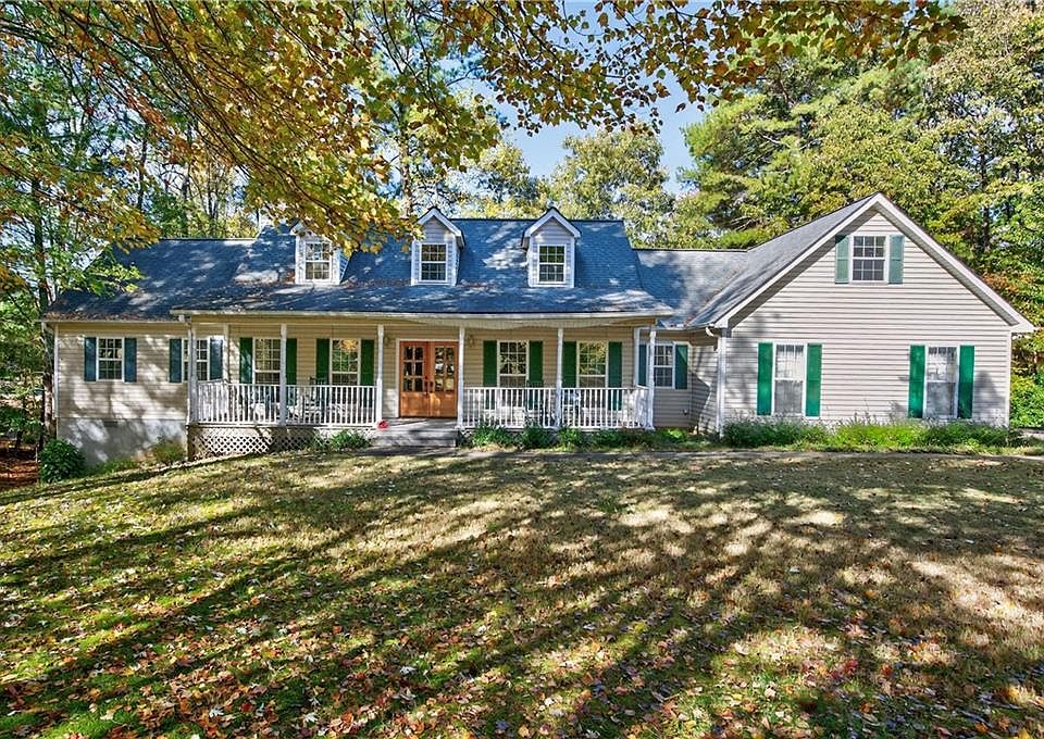 WOW! Complete remodel! This home will be MOVE-IN ready complete with all new finishes throughout including new flooring, paint, updated kitchen, stainless appliances, lighting, custom design elements and MORE! Situated on just under 1 acre, this property has SO much to offer. Enjoy the cool Fall evenings on your expansive front porch having a drink while the world passes you by or enjoy plenty of summer fun BBQing on the back deck overlooking the wooded backyard. The Primary on the Main features beamed ceilings, custom lighting, custom closet and gorgeous new en suite bathroom. Two additional bedrooms can be found upstairs along with another fully updated bathroom. Additional storage can be found in the unfinished basement area of the home. The home offers plenty of privacy and is surrounded by mature trees and a well maintained subdivision near all area amenities including Lake Lanier. Don't miss out on this home because all you need to move in are your suitcases!