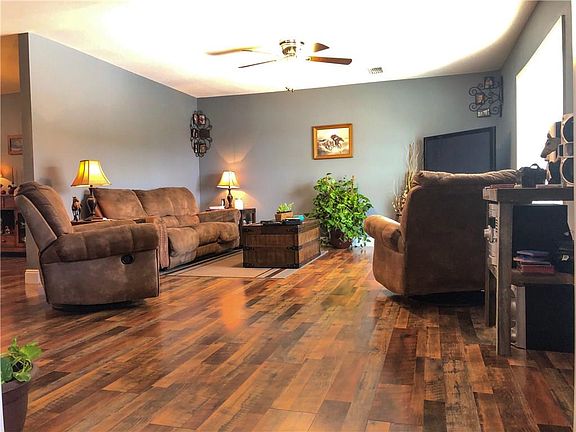 Space and Sunshine on this 30 acres with a stocked pond. This house features four bedrooms with a 32 x 12 bonus room upstairs where you can look out window at wildlife and pond. As you walk in the door you know its home with new laminate flooring, open floor plan. The kitchen/Dining combo is spacious with new counter tops and appliances. You have a master bedroom with walk in closet and bath your own getaway from it all. Needing space many walk in closets and storage space in this home. Laundry room spacious with the washer and dryer staying with house. Enjoy your 78 x 12 front porch where you can enjoy scenery of pond and all wildlife it offers. Looking for a workshop this 72 x 31 workshop is a dream come true. Comes with a 4 camera security system have seen many deers and turkeys. Per seller many updates new roof 2018, hot water heater 2018, Furnace and AC coil 2018 there is list in documents for your REALTOR to print for you. Call your favorite REALTOR for your appointment today.