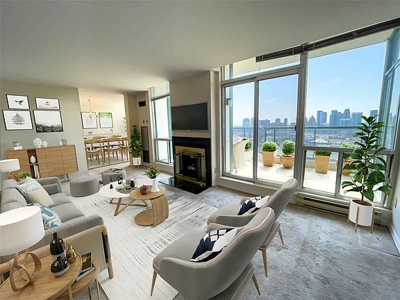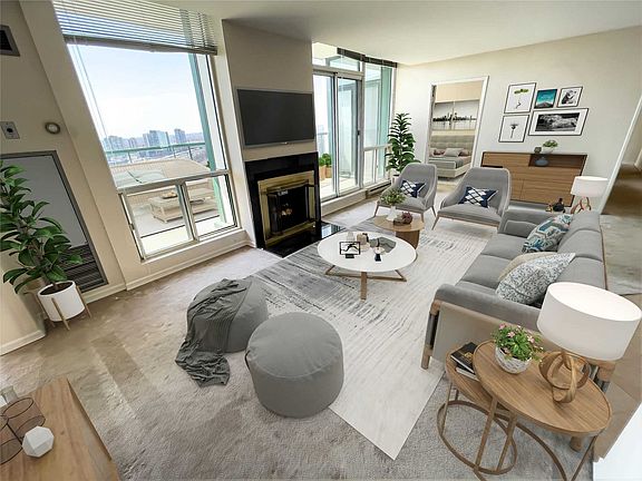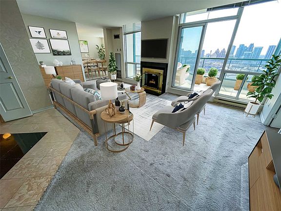 Spacious Penthouse Suite, Spectacular Views, Expansive Terrace, Fireplace, Ensuite Bathrooms Awaits Your Special Touches. Over 1700 S.F. In This Prime Location, With Loads Of Natural Lighting From Floor To Ceiling Windows Throughout. Parking For 3 Cars & Locker. Large Closets In 2 Bedrooms, Gorgeous Ciy & Skyline Views To Behold. Mins. Fr Missisauga Transit Terminal, 403 & Sq 1. Shopping & Restaurants. Pls Note Virtually Staged.