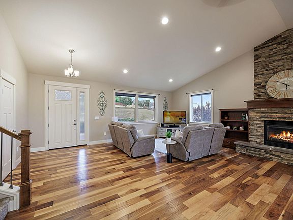 Welcome to your dream home! This stunning residence features custom details throughout, including rich hardwood floors and exquisite Brazilian walnut cabinets. The spacious kitchen boasts a large island perfect for family gatherings and entertaining. The main-level primary bedroom is a luxurious retreat with a walk-in closet and custom shower. Vaulted ceilings enhance the open, airy feel. Upstairs, enjoy a large landing, a full bath, and bedrooms with built-in window seats and storage. The lower level offers two large rooms, a full bath, and a 10x18 storage room. Outdoors, relax on the deck with valley views or explore the landscaped backyard with powered RV parking. Located in a fantastic neighborhood. This home blends elegance with practicality.