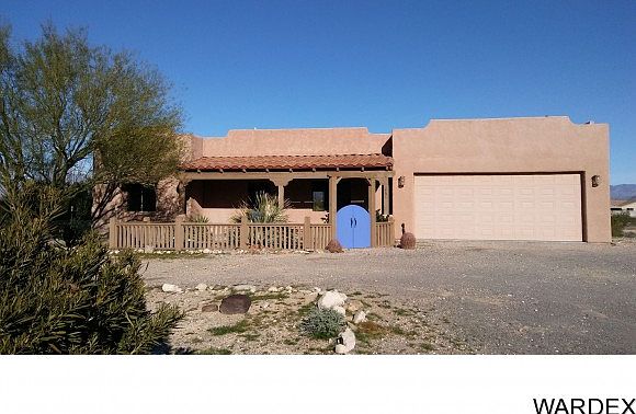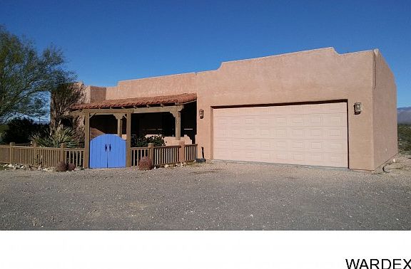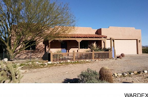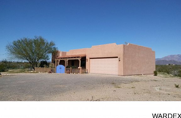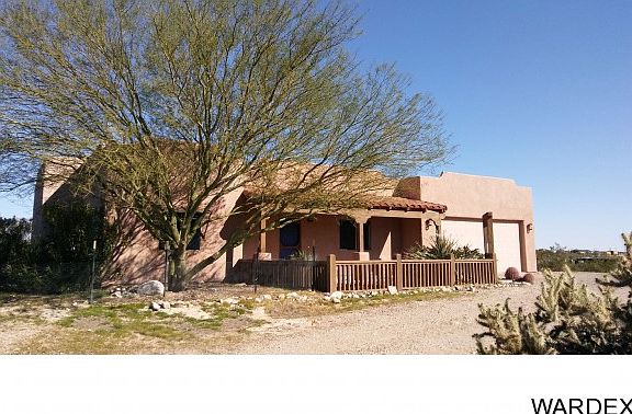 Take in the amazing views of the Black Mountains in this serene desert setting while sitting on the front porch of this clean and cozy 2 bedroom 2 bath custom Santa Fe home. A comfortable 1375 sq. ft. open floor plan home has tile floors in the kitchen, baths, laundry room and carpet in the living room and bedrooms. Move-in ready, fresh interior paint professionally done. Attached is a 2 car garage with RV/motorhome hookup on the side. It sits on 4.82 acres which can be subdivided, seller has a recorded survey already done for subdividing. Enjoy your own water supply as this home has it's own well. Located on good dirt roads in the Pioneer Valley subdivision of stick-built only homes - no manufactured allowed - and just 20 miles to Kingman and 35 miles to Lake Havasu City - a very easy and quick commute to either community. This home also has all of the amenities of life in town: high speed DSL internet, telephone, cable/satellite TV, garbage service, FedEx and UPS deliveries. You will marvel at the glorious starry night skies while hearing the coyotes howl and the wild burros bray. Explore the incredible desert right outside your door by horseback or RZR! New roof coating on roof.