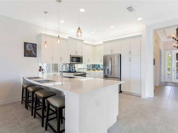 Newly constructed, barely lived in Tribeca floorplan, with over 2,200 square feet of living space and 2 car garage is situated on a 0.25 acre lake lot. This light filled open concept home boasts numerous upgrades including - crown molding, gourmet kitchen with stainless steel appliances, extra drawers, pantry, mirrored backsplash, and microwave vent to outside. With 3 bedrooms plus den/office and 2 ½ baths, this pool home offers an extended, wraparound lanai, security system, electrical upgrades, impact glass windows, separate Master Bedroom entry door to lanai, soft close cabinets and drawers and Hunter-Douglass window treatments throughout. One of the best lake views in all of Stonecreek! Stonecreek is a resort style community that comes with resort style swimming pool and lap pool, spa, beach volleyball, tot lot, water play park, indoor sports complex, fitness center, game rooms, social hall, catering kitchen, and in/out gathering rooms. Please see attached list of extra upgrades.