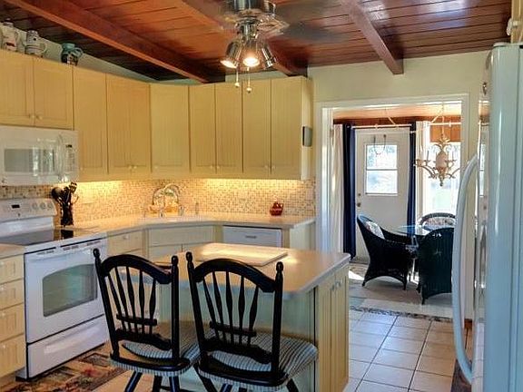 - Interior Features: Wood Cabinets, Counters-Solid Surface, Ceiling-Beamed