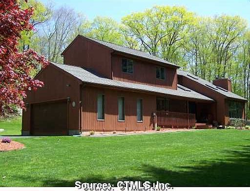 Spacious, beautifully maintained Contemporary Colonial set back from road surrounded by land trust with access to Bluff Head Trails. This 4 bedroom, 2.2 bath home is light a bright with its vaulted ceilings and newer skylights. It features hardwood floors throughout and has just been freshly painted in neutral colors. The eat-in Kitchen with stainless steel appliances and ample cabinetry has sliders to a wonderful screened porch. Formal Living room opens to the Family room through a large arched entryway. Master Bedroom offers a full private bath with a fabulous oversized walk-in closet and private balcony overlooking the backyard. This property boasts a unique (and gorgeous) Yurt (at a cost of $60k) hidden in the woods of this 4.34 private acre lot. A rare, private retreat for guests or an amazing she-shed/man-cave! The Yurt has heat with A/C and a wood stove! Property also offers a solar run chicken coop, fire pit, numerous fruit trees in a fully fenced in backyard. Lower level is finished with a recreational room that has a built-in bar with sink, music room and office space with 1/2 bath~ this private office space has a walk-out suitable for an in-home business. New roof in 2014, new well pump in 2019, new pellet stove, Central Vac and A/C, electric fence, security system...schedule your private showing today before you miss out on this amazing property!