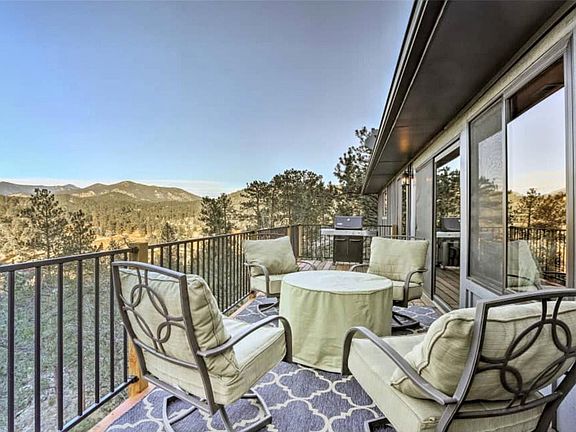 Stylish, executive home showcases the best of mountain living-expansive views from nearly every room, sophistication, peace and tranquility-just minutes from downtown Evergreen by car or by foot! This, unassuming from the exterior, completely updated, home will impress you with it's great spaces......Chef's kitchen with new appliances and large island for gathering, open to living room with cozy, wood fireplace and a backdrop of Mount Evans! Master bedroom has large walk-in closet just waiting for your personal touches and design featuring washer/dryer connections for true, main level living, along with the tasteful master bath. Lower level features 3 large bedrooms with great closets, family room with another wood burning fireplace, wet bar, bath, laundry and potential space for an attached apartment, Guest suite or other added living space. You have to see to appreciate.