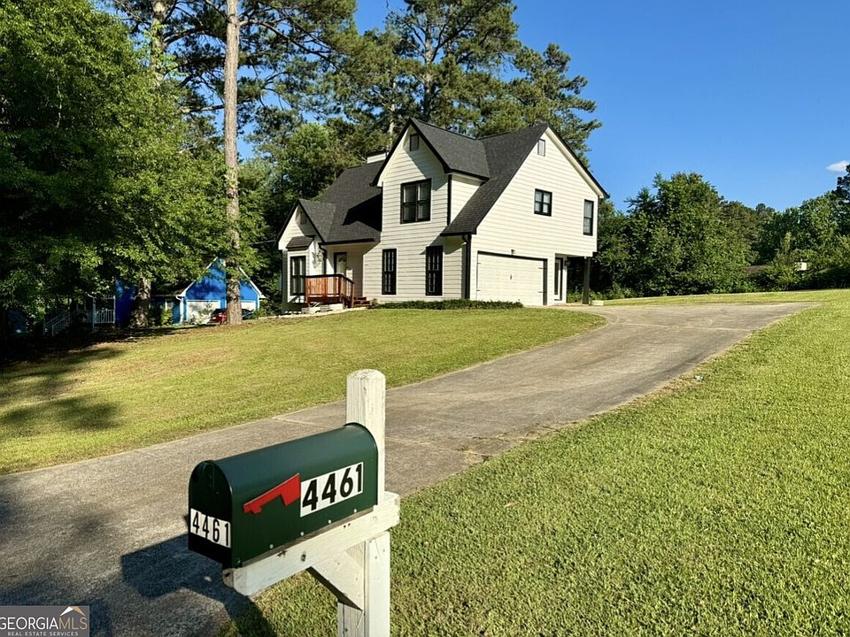 This fully renovated move-in-ready home boasts a NEW ROOF, GUTTERS, FRONT DECK, PAINT (INTERIOR & EXTERIOR), OUTDOOR AC UNIT, KITCHEN, LIGHTING FIXTURES, LUXURY FLOORING and much more. It is situated on .43 Acres in a serene community with NO HOA. Residents will enjoy the spacious interior which offers plenty of room for comfortable living. The property's location in Douglasville offers a peaceful suburban setting while still being conveniently located near major highways, great schools, shopping, dining, and entertainment options, all within 10 minutes from the house. Located 5 minutes from the I-20 highway, the commute to midtown Atlanta is just 30 minutes! Residents can enjoy the tranquility of the neighborhood while still having easy access to all the amenities of city life. Inside, this freshly painted home features a well-designed open layout with two-story vaulted ceilings that includes multiple living spaces and a cozy fireplace that creates a warm and welcoming environment for both relaxation and entertainment. The kitchen is equipped with modern stainless steel appliances, a roomy pantry, an extra closet, a laundry closet, and ample cabinet and countertop space, making meal preparation a breeze. The bedrooms are spacious and offer a comfortable retreat at the end of the day. The bathrooms are well-appointed and provide convenience for the household. Additionally, the home features a half bathroom for guests' use. Overall, 4461 Mitchell Mill Rd. is a lovely home that offers a blend of comfort, functionality, and convenience. With its ample living space, well-maintained yard, and great location, this property presents a wonderful opportunity for anyone looking for a place to call home in Douglasville, GA. Don't miss out on the chance to make this charming property your own!