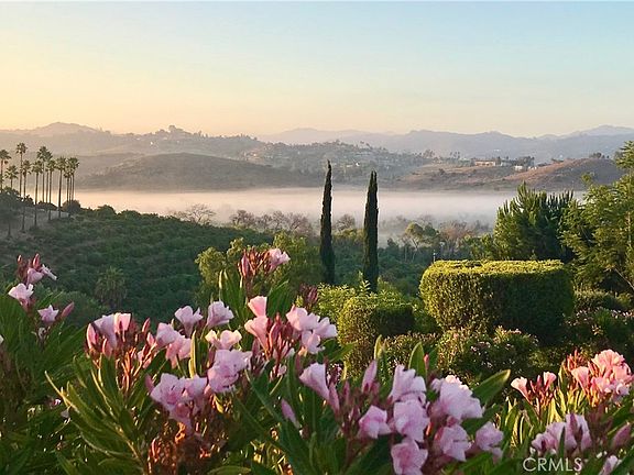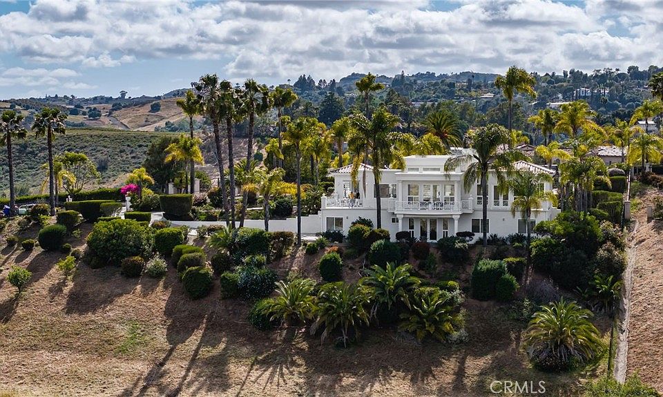 Seller does not want to be contacted please be Respectful. The home should be back on the market after the new year.. Welcome to 4462 Fallsbrae Road, an exquisite hilltop estate blending Mediterranean charm with modern luxury and eco-conscious living. Situated in the rolling hills of Fallbrook on 2.44 gated acres, this 3,930 sq ft custom home offers stunning panoramic views, timeless architecture, and seamless indoor-outdoor living just minutes from local vineyards, golf courses, and coastal attractions. A grand entrance with manicured landscaping and mature palms leads to a striking white stucco exterior, adorned with classical columns and elegant wraparound balconies. Large windows and French doors bring in abundant natural light while framing scenic vistas in every direction. Inside, soaring ceilings and dark wood floors set the stage for refined living. The formal living room features a dramatic floor-to-ceiling stone fireplace, framed by tall windows and architectural columns. An open-concept layout flows into the chef-inspired kitchen, complete with a curved granite island, gas cooktop, dual ovens, walk-in pantry, and skylight that fills the space with natural light. The primary suite offers a private balcony, spa-like bath with jetted tub, dual vanities, and custom closets. Three additional bedrooms and updated bathrooms offer flexibility for guests or home offices. An oversized laundry room provides generous cabinetry, counter space, and bright functionality. Multiple balconies and terraces encourage al fresco dining and entertaining with views of the surrounding hills and sunsets. A rooftop solar panel system enhances energy efficiency, making this home both luxurious and sustainable. Additional features include a 3-car garage, extensive storage, designer lighting, and future potential for a pool, guest house, or vineyard. Tucked in one of Fallbrook's most desirable neighborhoods, this estate delivers peaceful country living with upscale convenience—less than an hour to the coast. 4462 Fallsbrae Road is not just a home; it’s a serene, sophisticated lifestyle waiting to be enjoyed.
