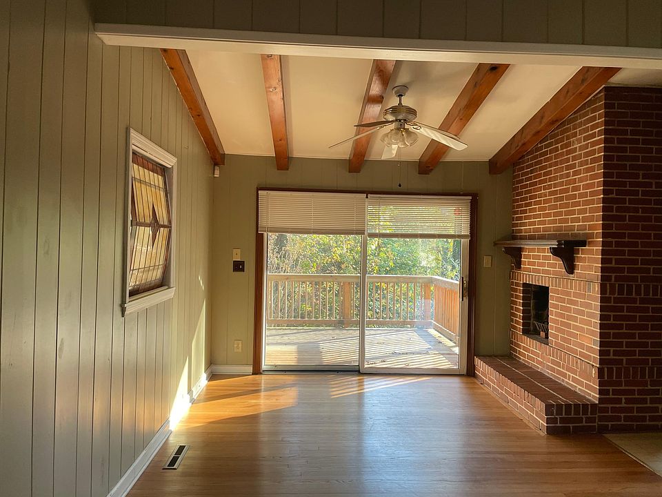 Freshly painted with new appliances and new windows. Living room with high ceilings overlooking to a wooded area. House has hardwood floors. In addition, there is a basement/storage area. Two car carport. A good size backyard for the kids to play, adults to meditate, and friends to gather. Owner pays for trash collection and lawn maintenance. Tenant responsible for gas, electricity, water, and internet. Only pets allowed are cats.
