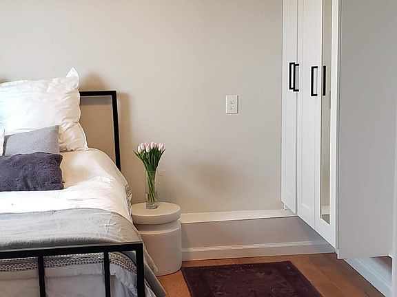 Gut-renovated 1 bedroom in-law unit apartment. New hardwood floors, new kitchen with quartz countertop, new stainless steel appliances including gas stove, fully renovated bathroom with tile throughout, marble counter vanity, new fixtures including a chair-height dual flushed Toto toilet and new Kohler tub. Air conditioning and washer/dryer in-unit. An 60 sq.ft. outdoor private deck off the french doors in the living room with views of the San Francisco skyline and of the manicured Mediterranean yard. Semi-furnished (bedroom frame and mattress shown in images comes with the unit, both in pristine condition). Unit is in the lower level of a single-family home which is set on a hill. Separate secured entrance behind a smart-lock gate and a well illuminated new concrete path. Ring security cameras throughout the property. Plentiful street parking. Quiet neighborhood with respectful neighbors. Apartment is downhill from street level. Tenant pays for one quarter (25%) of gas, electric, water, sewer and waste management - average monthly cost is $150/month. Alternatively, flat rent of $1,950 with these utilities included. Tenant pays for internet and cable to the apartment in full. Looking for a 6 or 12 month lease. $1,800 monthly rent reflects a 10% discount, applicable to both 6 and 12 month leases. Single occupant only. Respectful and quiet tenant. No smoking of any kind at the premises (tobacco, cannabis, vape, or other). Renter's insurance required. References, proof of income and application required. No pets.