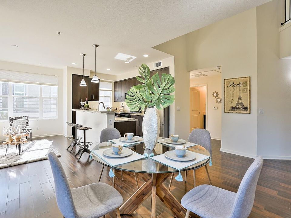 Charming home in Irvington area! Gorgeous & spacious 2 Beds 2 Baths plus an extra large Den. The special two floor design Condo feels like a bigger home. The oversized Den on 2nd floor has multifunction for entertainment, guest room and office. Corner unit with high Ceilings bring lot of natural light and flowing air. Beautiful upgraded interior with excellent condition! Hardwood floor, Double-paned windows. Beautiful kitchen has Granite countertop w/breakfast bar and stainless steel appliances. Two assigned parallel parking spaces near elevator. Heated community pool and playground. Security gated building and parking in a quiet and friendly neighborhood. Convenient access to BART, freeways, shops and restaurants. Award winning top-rated Schools! Please enter the unit from Westerly Common. Offer due 3/26/19 5 pm
