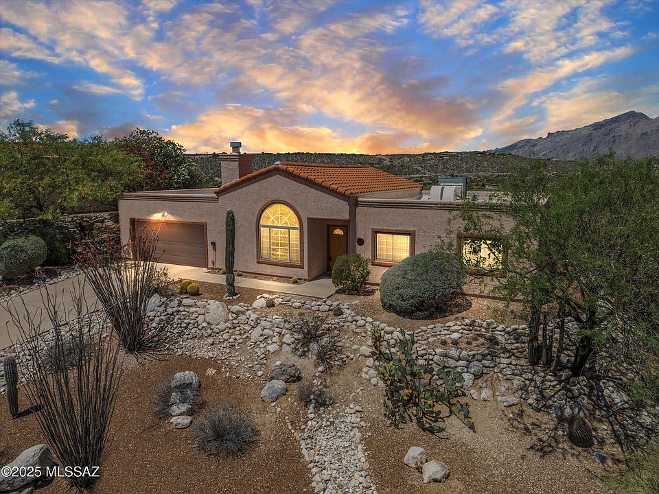 Welcome to 4463 N Summer Set Loop, dramatically positioned on a premium elevated hillside lot of almost 1/4 acre in the prestigious Summerset neighborhood, this stunning 3-bedroom, 2-bath home commands spectacular panoramic mountain views. The stylish exterior featuring warm stucco tones and architectural details combines modern desert design with timeless Southwestern elements - perfectly capturing the essence of Tucson foothills living.Inside, the home welcomes you with soaring vaulted ceilings, elegant arched windows, and a cozy fireplace with decorative ceramic tile surround. The spacious living room offers an open floor plan ideal for entertaining. The fully upgraded kitchen boasts honey-toned cabinetry, stainless steel appliances, beautiful granite countertops, and a breakfast bar with additional seating. Adjacent is a bright dining area with high ceilings and sliding glass doors that open to a desert landscaped patio.