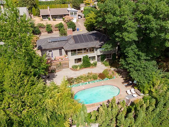 Welcome to this stunning mid-century modern gem nestled in the highly sought-after Hillsdale neighborhood. This home boasts an array of tasteful upgrades and modern amenities while retaining its timeless charm. With an impressive wall of windows, you'll be greeted by an unparalleled view that seamlessly connects the indoors with the lush outdoors. One of the most remarkable features of this property is the expansive backyard oasis that awaits you. Cool off on hot summer days in the refreshing solar heated swimming pool. Your very own private retreat with multiple spaces for lounging, dining and watching nature in the pollinator's paradise garden. The stunning remodeled kitchen exudes both luxury and functionality. The star of the show is the spider vein soapstone counters and backsplash, complimented by Dacor and GE Cafe appliances adorned with bronze hardware. The bespoke island doubles as a workstation and features a walnut butcher block. This home boasts not only beauty but practicality with a new roof and gutters installed in 2023, new SW-facing wood/aluminum clad windows, and a high-efficiency furnace and air conditioner, providing peace of mind for years to come. A list of upgrades too extensive to detail underscores the meticulous care and consideration that has been poured into this home. From its mid-century modern aesthetic to its contemporary conveniences, this home offers an exceptional living experience that merges the past and present in perfect harmony. Don't miss the chance to make this treasure your forever home. [Home Energy Score = 7. HES Report at https://rpt.greenbuildingregistry.com/hes/OR10090300]