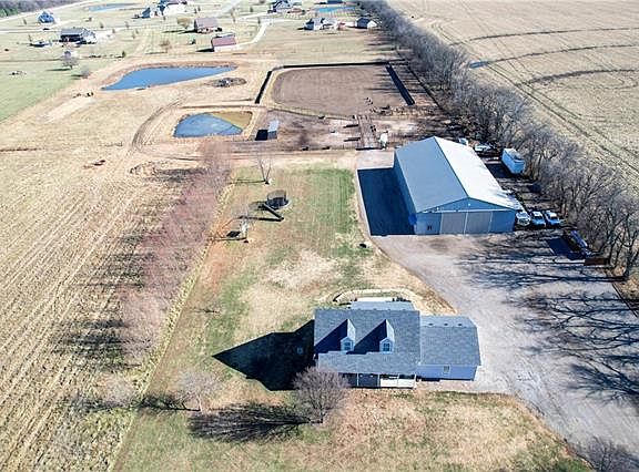 ~Look no further, this country charmer has it all~ Conveniently located off I35 & K33(Wellsville exit), this 13.5 acre property is close to the city (only 25 mins to Olathe/OP and 40 to downtown.) Offering a beautiful 1.5 story, 4 bed 2.5 bath home, nicely updated with lots of natural light, extra storage and many recent updates including a new roof, hot water heater, hvac, carpet, covered back porch and more. A non conforming 5th bedroom in the basement currently used as an office makes working from home a breeze, main floor laundry and a separate entrance are so convenient when coming in from the barn. Outside is loaded with everything you could need and more, large 60x100 metal out building with an office/full bath, 60x60 concrete floor and 60x40 sand area perfect for livestock. A stocked 16' deep pond, 225x150 riding arena, all pipe including 3 pipe corrals with auto waters. This is a dream equestrian facility, also could be used for livestock or bring a new vision to this amazing property! Make sure to see the list of improvements, too many to list!