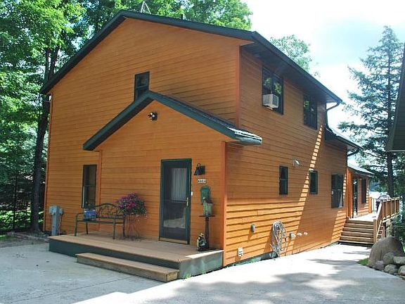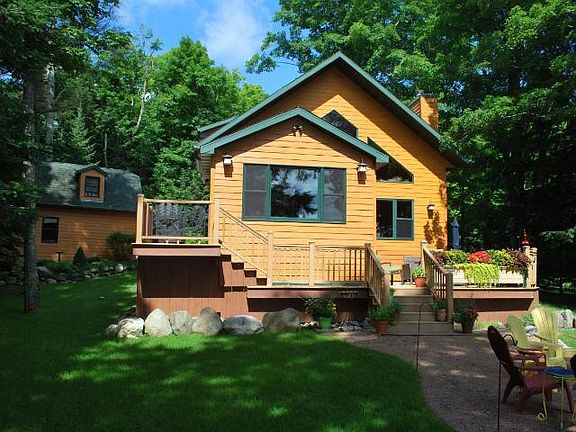 LAKE LUCERNE GEM! Located on picturesque and pristine Lake Lucerne one of Northern Wisconsin's most highly sought full recreational and fishing destinations. A large 14 x 20 open sun deck offers panoramic waterfront viewing and spectacular sunrises. This well maintained home with an open concept design features 2 bedrooms, plus an additional loft area with sleeping space, 2 full bathrooms, cathedral ceilings, wood walls, floor to ceiling pellet fireplace, gorgeous expansive windows and a lakeside sun room that can be utilized year round. The kitchen is fully equipped with new appliances, quartz counter tops and a butcher block island. An extra bonus is the finished 18 x 26 room above the garage that can be used for living area for guests. Additional buildings are a 5 x 11 woodshed and a 11 x 12 storage shed. All of the furnishings, pontoon boat & pontoon lift are negotiable. Take advantage of this opportunity to own 100 feet of exclusive waterfront property.