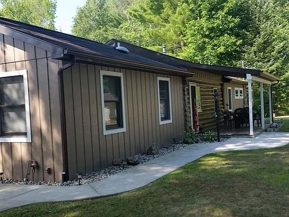 WATERFRONT HOME with full log interior, cathedral ceiling with sky lights, 267 Ft on All Sports, 2080 Acre Secord Lake, at the end of the street with 5 off water lots across the street. Steal Seawall, extensive decking & fire pit area. Make this your home or weekend retreat. 2 bedrooms 2 baths, 2 sheds, 1 1/2 car garage with lean to, used as wood storage, enclosed porch offers additional living space. Easy to move in and enjoy living at the lake, includes furnishings. Lake sprinkler system.