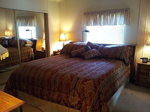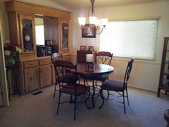 Beautiful Home, Must See! Move–in Ready! This great home is very well kept, clean and offers some nice updates. It has a spacious kitchen with plenty of storage, new refrigerator, new dishwasher, new range hood and breakfast bar. The separate dining area has a nice display hutch and pretty chandelier. Floor plan is open with lots of living space. The master has a large wall to wall closet and spacious private bath with walk-in shower. Brand new water heater. Laundry room is equiped with washer and dryer. Outside there’s beautiful landscaping and a covered deck. The roof is new in 2011; storage shed and carport. Lot Rent: 545/mo | Includes: Garbage, Sewer