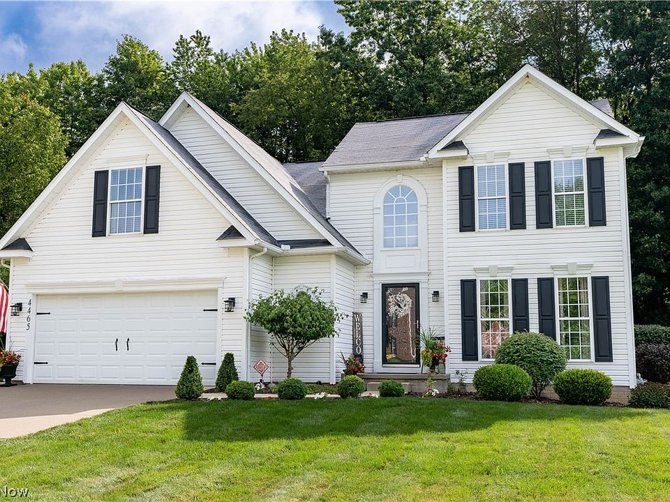 Here is your chance to live in a beautiful house in Green! This two-story colonial has striking curb appeal in a wonderful, high end, desirable neighborhood! The great room offers soaring ceilings, a view of the cat-walk on the second level and an open kitchen concept making entertaining fun! There are beautiful views of the rear wooded lot through floor to ceiling windows that flank each side of the fireplace. The first floor master suite has a really pretty master bath with double sinks and a walk-in closet. The laundry is conveniently located on the first level as well. I think another show stopper here is the beautiful, large deck and private backyard. It's the perfect place to relax at night and entertain friends and family.