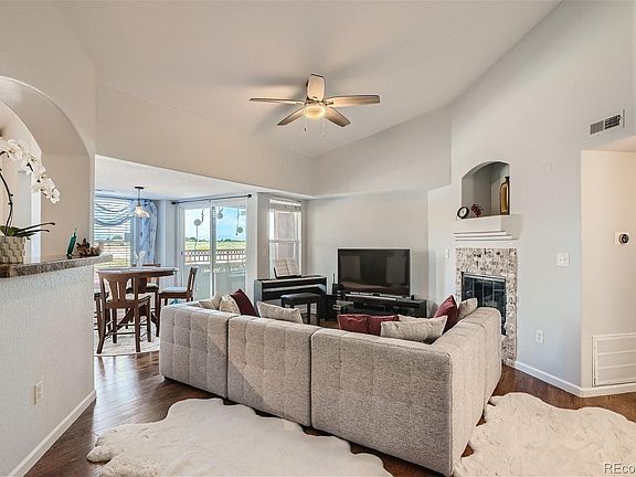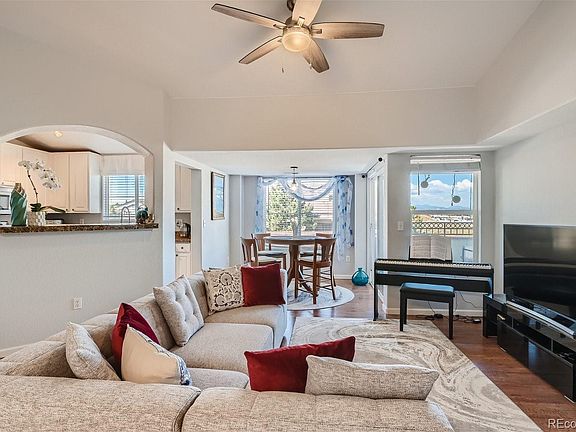 Rare find! Penthouse style two bedroom condo, with great mountain views & covered balcony* Popular open floorplan featuring large family room with vaulted ceilings and gas fireplace* Updated kitchen with granite counters, stainless appliances & breakfast bar* Dining area & sliding doors to covered balcony with ample seating space & mountain views* Large master suite with vaulted ceilings, walk in closet, its own access door to the balcony and en-suite bathroom* Secondary bedroom has large closet & access to additional, updated bathroom*Many updates including bathrooms, laminate floor throughout, paint, newer furnace, A/C & water heater. Detached garage and one reserved parking space. This home is located on the second floor with private entrance & walking distance to local restaurants. Relax at the community pool, with use of clubhouse & gym included in your HOA dues. Close to parks, shopping, C470, Park Meadows, DTC. Must see inside!