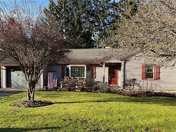 Your opportunity for a terrific ranch just outside the village of Marcellus. This home features an addition that created an open kitchen/dining/family room with a natural gas fireplace and hardwood floors. The kitchen offers a brand new dishwasher, convection natural gas stove, refrigerator and microwave, a large pantry, and an island with a double sink, The family room has a glass sliding door that leads to a deck overlooking a fenced back yard. There is more land beyond the fenced yard with apple trees, grapes and raspberry bushes. There are three large bedrooms, a remodeled bathroom and some cedar closets. Additionally there is a formal dining room and a living room with a wood burning fireplace and built-ins. The dry basement has a wood shop, tons of storage space, washer and dryer, utility sinking, sump pump, half bath, walkout bulkhead doors and an extra refrigerator and stove for the holidays. Vinyl siding, gutter guards and a Generac generator, top off this well maintained home. Roof installed by VanDerhoof approx. 2015. Taxes do not include Star rebate. According to family member the square footage is different from the tax record due to a family room addition approx 15' x 20'.