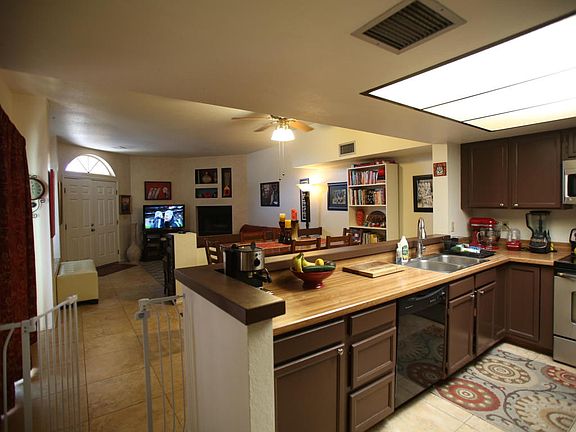 Charming, well maintained, 2 bed, 2 bath townhouse with fireplace, located in the back of a quiet, beautifully landscaped community. All stainless steel kitchen appliances, brand new tile, and backyard with plenty of room for entertaining. Two car carport, with plenty of parking for guests, close to the community pool and the Rillito river path. This property is currently occupied until April 3. Seller is related to listing agent.