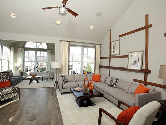 This customizable Adams express home features 4 Bedrooms & 2.5 Bathrooms. The open floor plan features a gas fireplace in the Great Room. Hardwood & tile flooring are included in select locations. Enjoy the outdoors on the Screened Porch & patio. Move in within 120 days! Enjoy the luxurious Clubhouse with 5-star amenities. Relax with no yard work: we do the mowing, raking & snow shoveling. Open daily 10am-5pm (6pm DST). Model photos shown.