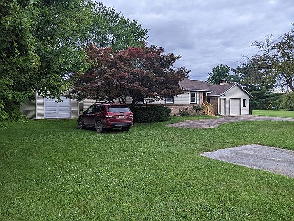 Ranch style home on 20 Acres. 4 Bedrooms Master at one end all others at other end. 2 full bathrooms one at each end. Kitchen-Dinning -Family all in one with fireplace. Livingroom and first floor laundry. New Roof 2yr old, updated wiring, New plumbing, 40+inches of insulation in attic. New carpet in bedrooms , New vinyl flooring throughout , full basement with fireplace. Attached 2 car garage. detached 1 1/2 car garage, Large pole barn outback 40'x50' Woods, farmland and yard