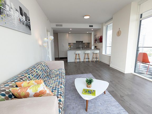 Welcome to Juneau. This air-conditioned, bright, and spacious 940 sq ft corner residence features 2 oversized bedrooms set apart on opposite sides for privacy, 9 ft ceilings, and a 205 sq ft covered balcony with stunning North Shore mountain and city views. Enjoy a bright, airy kitchen with a side window, integrated appliances, and ample storage space. Immaculately maintained by the original owner, this move-in-ready home is sure to impress. Juneau is a boutique luxury tower with only 147 homes, offering privacy and exclusively in the heart of Brentwood. Residents enjoy premium amenities including a fitness centre, yoga studio, study room, social lounge, and landscaped courtyard. Steps to SkyTrain, Brentwod Mall, shops, and restaurants. Open House this Saturday Oct 4th, 2-4pm.